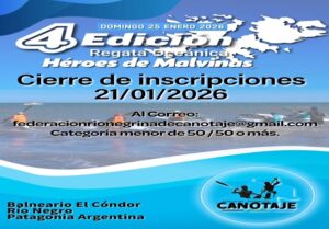 La Federación Rionegrina de Canotaje te recuerda e invita a la 4ª Regata Oceánica Héroes de Malvinas en Balneario El Cóndor. Que se llevara a cabo el Domingo 25 de Enero 2026, en el sector […]