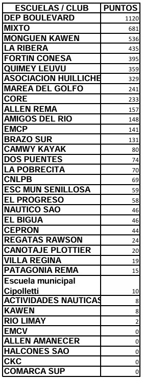 Puntaje por Instituciones con dos fechas disputadas (Gentileza F.R.C)