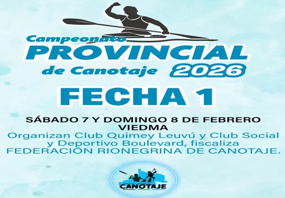 Con el Slogan “El Agua nos Llama” la Federación Rionegrina de Canotaje pone en marcha el Provincial de la actividad con la primer fecha el Sábado 7 . Reunión de Delegados 08 hs. a las 09 hs. comienzo de la primer competencia, y Domingo 8 de febrero. Idem al sábado todo en la Costanera de Viedma.”Paseo de los Palistas” Organizan: Club Quimey Leuvú y Club Boulevard. Fiscaliza: Federación Rionegrina de Canotaje. Las competencias están destinadas a todas las categorías posibles, siendo el interés de los organizadores incentivar la práctica del canotaje, incluidas las tablas Sup